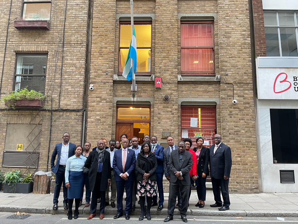THE SIERRA LEONE HIGH COMMISSION IN LONDON LOWERS THE NATIONAL FLAG IN MOURNING!πΈπ±π